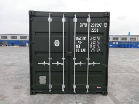 Conteneur neuf de 40 pieds avec portes de style S2 (les portes d’origine du conteneur). Ces conteneurs sont nos 40 pieds les moins chers car ils sont des conteneurs d’expédition ISO standard.
